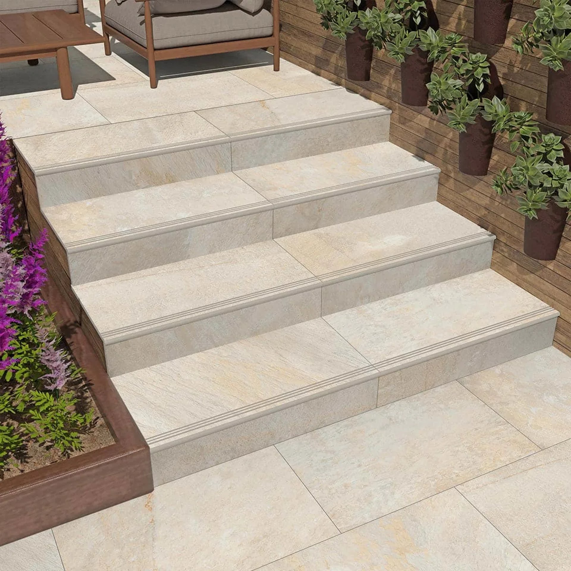 Trabajo con gres, porcelánico y piedra natural, buscando siempre una combinación de resistencia, estética y detalle en cada escalón.
